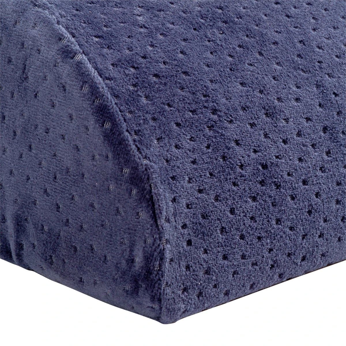 Almohada viscoelástica de piernas en color azul de firmeza media con forma de media luna diseñada para aliviar la tensión de las piernas cansadas y mejorar el flujo sanguíneo. Tiene una gran adaptabilidad, durabilidad y confort. Además, es completamente transpirable. Nuestra línea Essential ofrece una gran variedad de productos en accesorios de cama con tejidos de alta calidad al mejor precio. Diseñada para las personas que buscan los productos más prácticos para su descanso.
