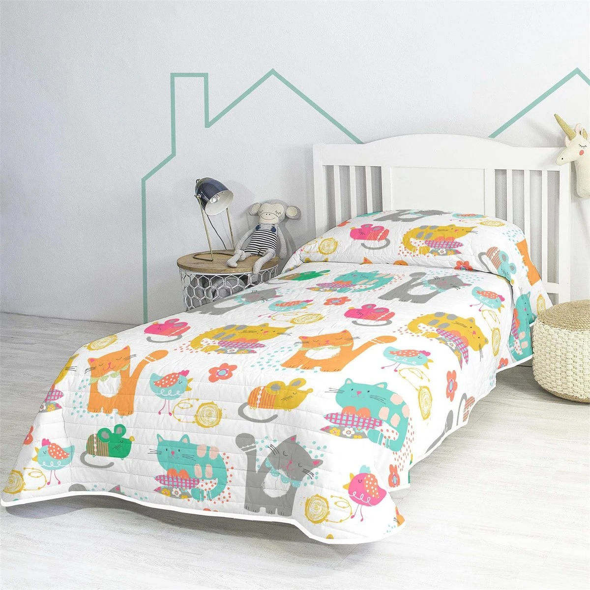 La colcha Cat & Mouse de la colección Moshi Moshi nos trae a la habitación de tus hijos una feliz historia sobre amistades poco probables . ¿Quién dijo que los gatos, ratones y pájaros no podrían ser los mejores amigos y divertirse juntos?La combinación precisa de colores de esta colcha es posible gracias a la impresión digital de alta definición, mientras que el algodón 100% con 150 hilos ofrece un toque suave y reconfortante.Acolchado en forma de rayas.El relleno es 100% poliéster de fibra hueca siliconada de 100 Gr.Disponible en las siguientes tallas:• 180×260 [ Cama 80/90 ]• 200×260 [ Cama 105 ]