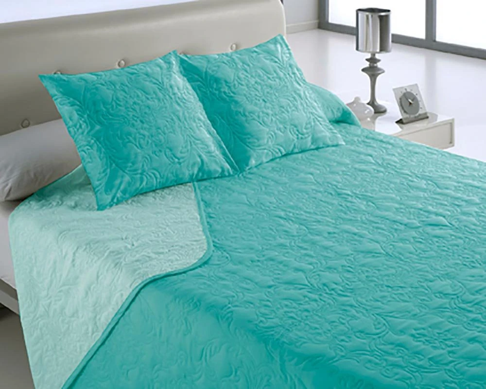 No solo te ayudará a combatir el frío. Con la colcha bicolor VEGAS AQUA, aparte de estar calentito durante las noches, también podrás imprimir personalidad y diseño a tu dormitorio. La colcha VEGAS AQUA tiene un corte clásico pero su bordado de formas sugerentes y geométricas aportará el contrapunto de modernidad al conjunto.Además, con la colcha VEGAS AQUA puedes dar un toque diferente a tu habitación. Gracias a su diseño bicolor podrás disponer de dos tonalidades para que las alternes como más te apetezca y consigas cambiar la decoración de tu cuarto con muy poco esfuerzo.