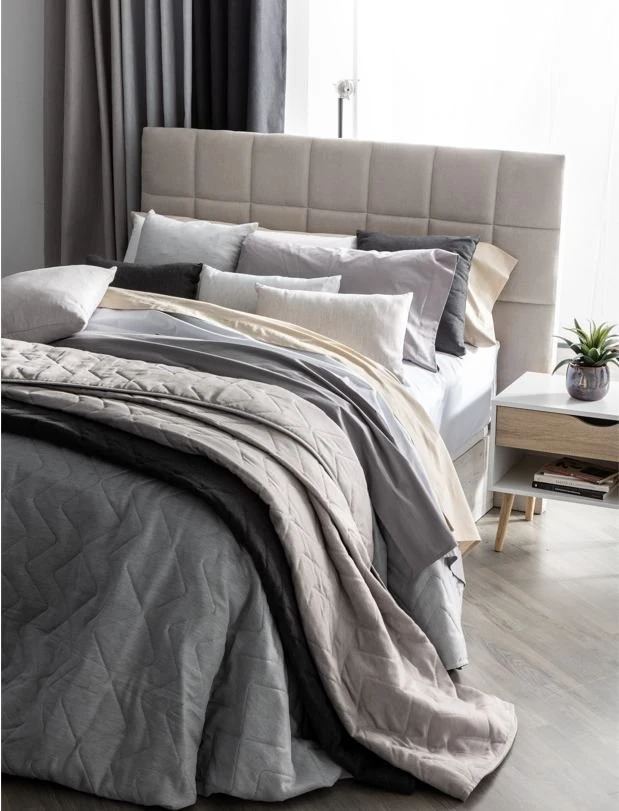 Transforma tu dormitorio en un refugio de lujo con la colcha reversible de color plateado SIONE. Esta prenda de alta calidad está hecha de un 50 % de poliéster para brindar suavidad y comodidad. Además le da un toque de sofisticación y modernidad. Con su diseño reversible, puedes cambiar fácilmente el aspecto de tu dormitorio. ¡Actualice su ropa de cama hoy y disfrute de una colcha para camas de 180 cm que se ve y se siente lujosa!