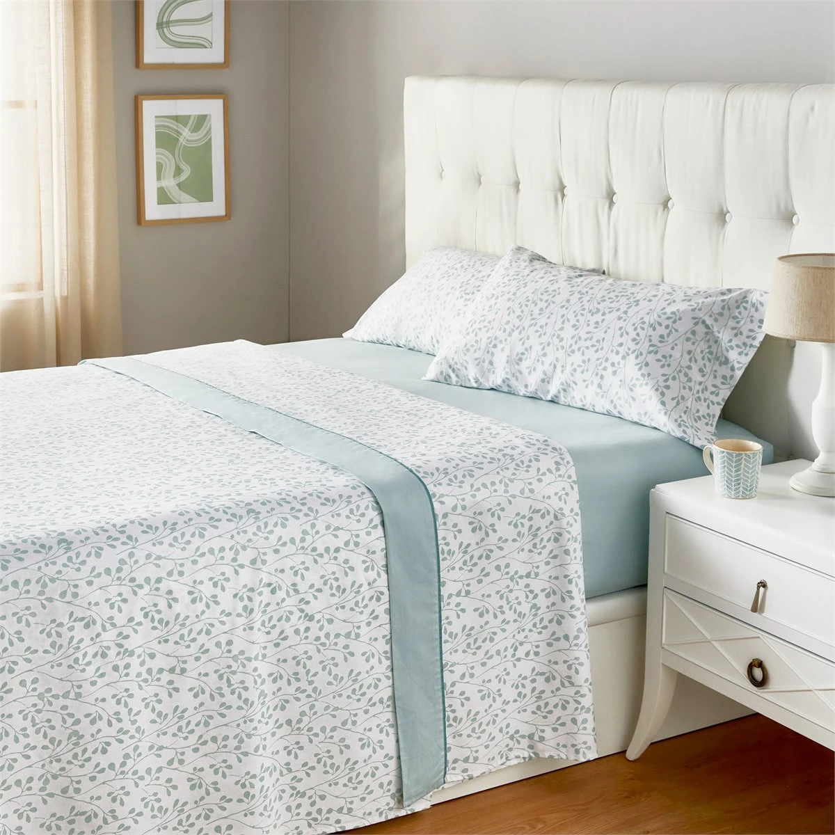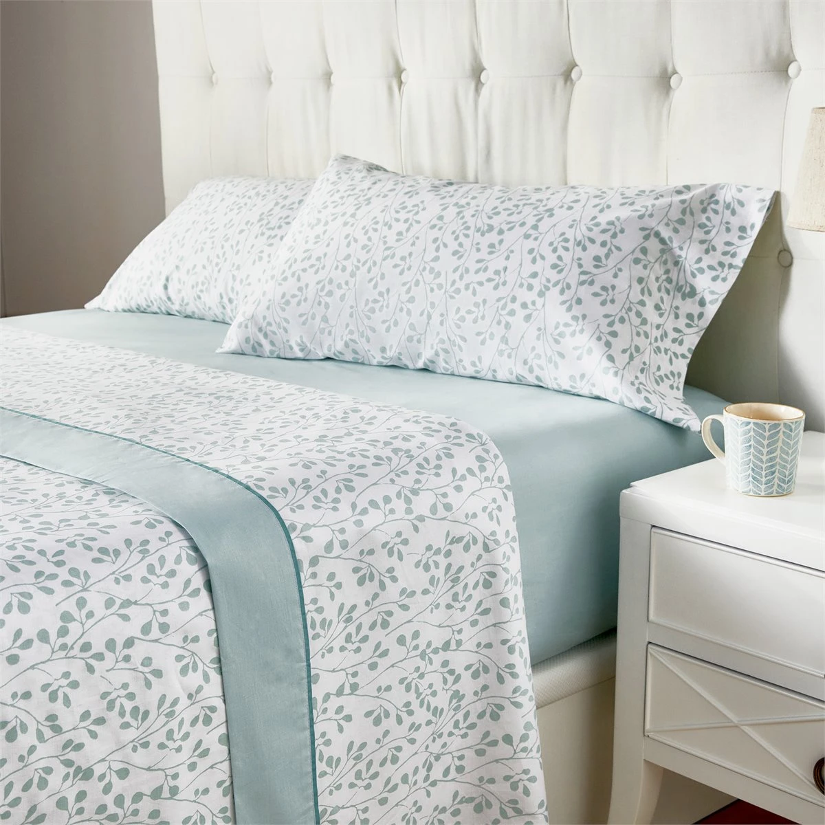 Nuestro juego de sábanas de 100% algodón está compuesto por una sábana encimera, una bajera y una o dos fundas de almohada según la medida escogida. Está confeccionado con un elegante estampado floral y el diseño de la sábana encimera además incluye el embozo a juego. Un juego de cama combinable con múltiples estilos decorativos transmitiendo lujo y confort. Disponible en varios colores. Nuestra línea Natural está confeccionada con tejidos naturales en 100% algodón de primera calidad, obtenidos de manera sostenible y con tratamientos que mejoran sus características originales, haciéndolos aún más suaves y resistentes. Sábana encimera: 170 x 270 cm. Sábana bajera: 90 x 200 + 30 cm. Almohadón: 45 x 110 cm