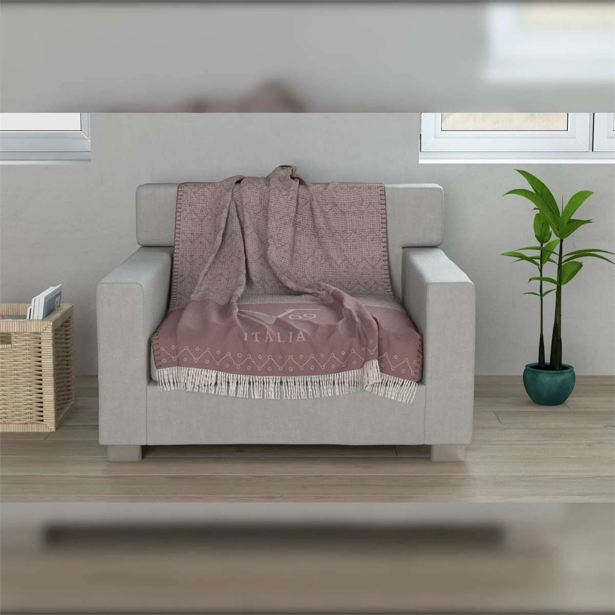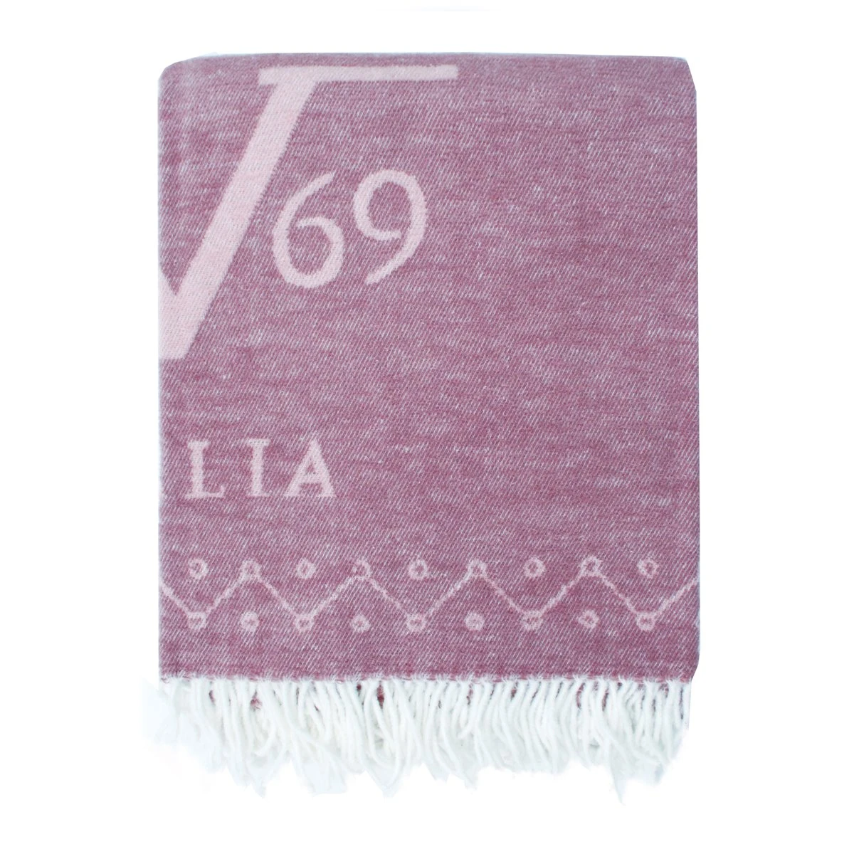 Manta De La Prestigiosa Marca Versace 19V69. – Medidas: 130X170 Cm – Color: Morrado Y Rosa – Material: Algod贸n Y Acr铆lico – Con Logotipo Versace 19V69 Abbigliamento Sportivo Srl – Certcion Oeko-Tex