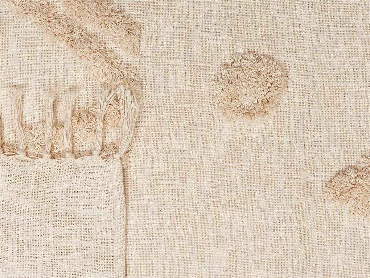 Manta decorativa. Añade comodidad a tu interior con esta manta decorativa. Está fabricada a partir de fibras de algodón de alta calidad. El patrón de mechones y los flecos en los laterales llaman poderosamente la atención. Se puede utilizar durante todo el año gracias a su transpirabilidad. Combina bien colocada sobre el sofá o la cama. Detalles: Tipo de Producto: Manta Estilo: Boho Color: Beige Tipo de material: Tejido Material principal: Algodón Composición del Material: 100% Algodón Densidad: 320 Diseño: Oriental Dimensiones: Ancho: 130 cm Longitud: 180 cm Altura: 1 cm Peso: 1.2 kg La oferta incluye: 1 x Manta Ventajas: Tejido resistente, transpirable y suave al tacto, Elaboración impecable, Decorativo y funcional, Brinda un toque moderno a cualquier interior, Crea un ambiente acogedor, Acabado preciso, Apto para lavar en lavadora Información de montaje: No requiere montaje Información adicional: Ten en cuenta que cada pieza está hecha a mano y es única, por lo tanto, el tono y el tamaño pueden diferir ligeramente. Consejos de mantenimiento: Algodón: 1.Lavar a mano o seleccionar un ciclo de lavado delicado (30°C, seguir las instrucciones del fabricante 2.No usar secadora y no planchar.