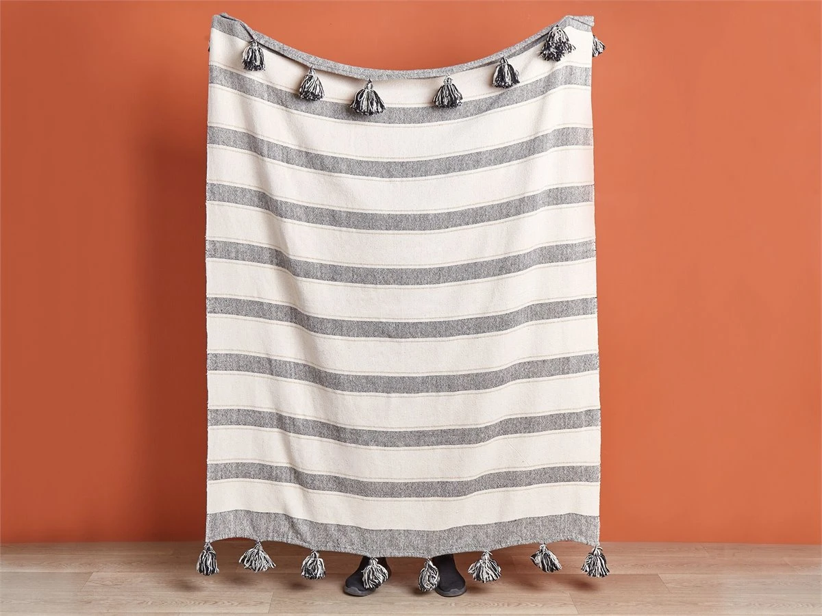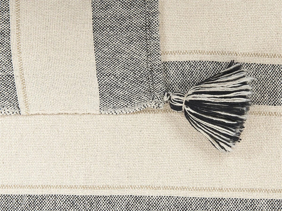 Manta decorativa. Añade comodidad a tu sala de estar o dormitorio con esta manta decorativa. Está fabricada a mano a partir de algodón y poliéster suave al tacto. El patrón decorativo y las borlas en los extremos aportan un aire boho al diseño. Detalles: Tipo de Producto: Manta Estilo: Moderno Color: Beige Tipo de material: Tejido Material principal: Algodón Material adicional: Poliéster Composición del Material: 90% Algodón Densidad: 300 Diseño: De rayas Dimensiones: Ancho: 130 cm Longitud: 170 cm Altura: 1 cm Peso: 1 kg La oferta incluye: 1 x Manta Ventajas: Increíblemente suave, Pieza muy llamativa, Para dormitorio o salón, No requiere mantenimiento regular, Acabado preciso, Certificado Oeko-Tex ® – Standard 100 Información de montaje: No requiere montaje Consejos de mantenimiento: Algodón: 1.No secar en la secadora ni planchar, 2.Limpiar solamente las manchas