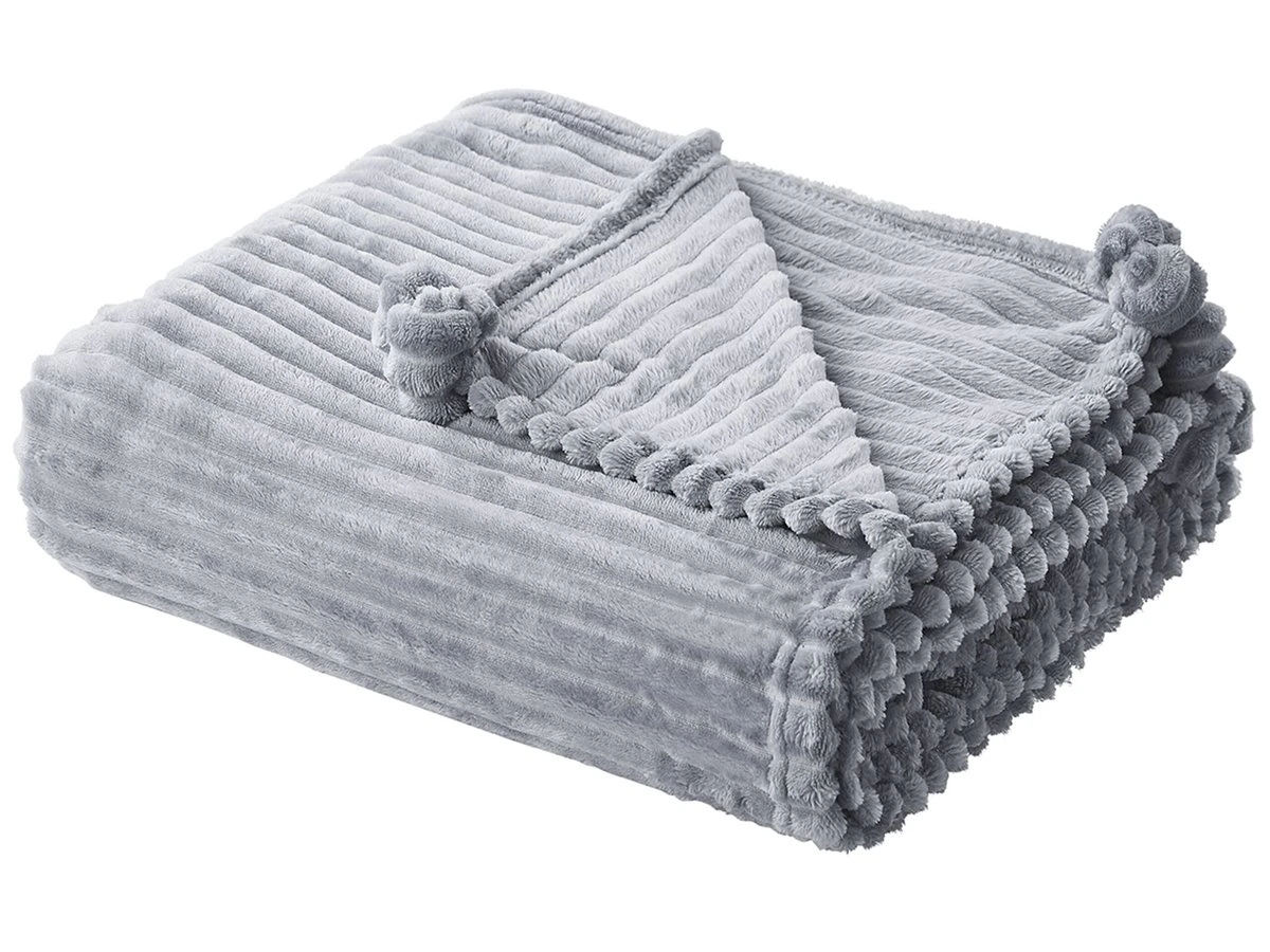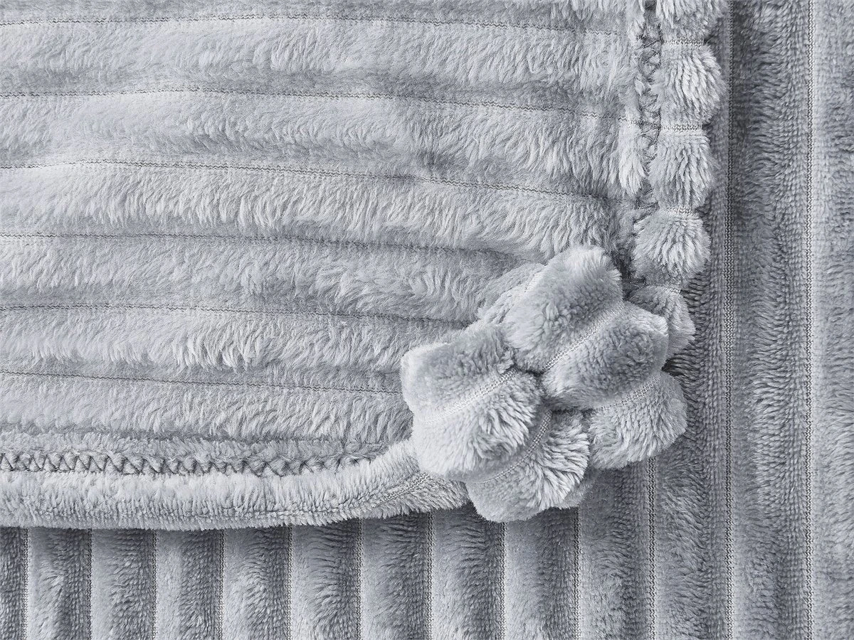 Manta decorativa. Añade comodidad a tu interior con esta manta decorativa. Está fabricada a partir de tela de poliéster de alta calidad y suave al tacto. La textura acanalada y los pompones decorativos llaman poderosamente la atención. Ideal para calentarse durante las noches más frías de invierno. Detalles: Tipo de Producto: Manta Estilo: Moderno Color: Gris Tipo de material: Tejido Material principal: Poliéster Composición del Material: 100% Poliéster Densidad: 280 Diseño: Sólido Dimensiones: Ancho: 150 cm Longitud: 200 cm Altura: 0.5 cm Peso: 0.9 kg La oferta incluye: 1 x Manta Ventajas: Increíblemente suave, Diseño tradicional con un toque moderno, Crea un ambiente acogedor, Decorativo y funcional, No requiere mantenimiento regular, Apto para lavar en lavadora Información de montaje: No requiere montaje Consejos de mantenimiento: Poliéster: 1.Lavar a mano o seleccionar un ciclo de lavado delicado (30°C, seguir las instrucciones del fabricante 2.No usar secadora y no planchar.
