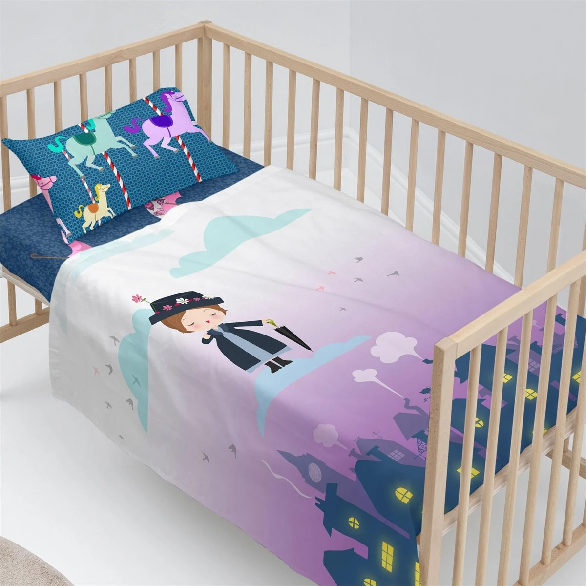 Acuesta a tu hijo entre las coloridas y animadas ilustraciones de la sábana Nanny de la colección Mr Fox. Pronto aprenderán todo sobre poderes mágicos y las maravillosas lecciones de vida de la niñera de Londres más famosa del mundo.Esta sábana suave y ligera de algodón 100% se puede mezclar y combinar con otros productos de la misma colección, e incluye una funda de almohada estampada.No incluye bajeraDisponible en las siguientes tallas: * 100×130 [ Cuna ] (incluye funda de almohada estampada 50×30. * 120×180 [ Maxicuna ] (incluye funda de almohada estampada 40×60.