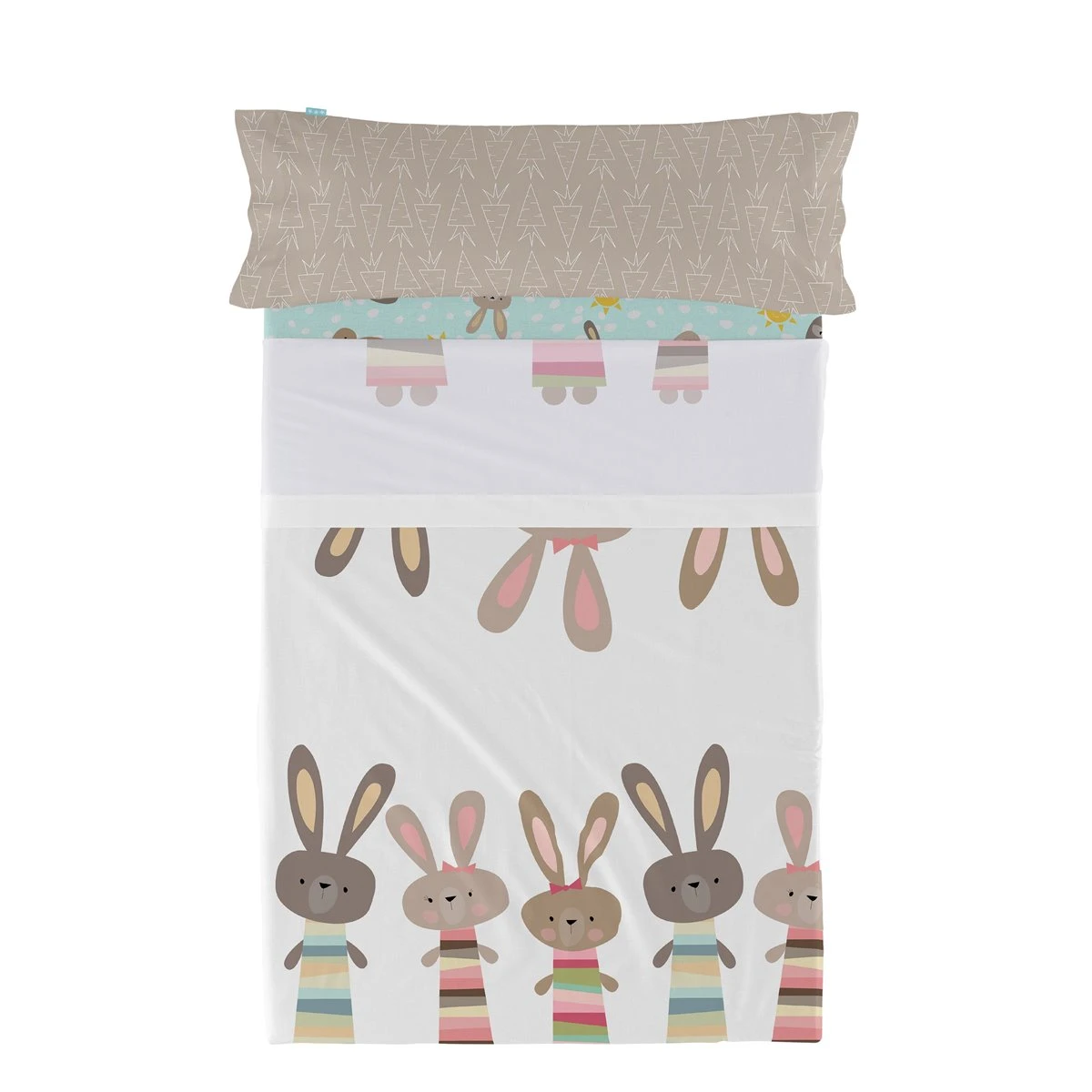 Desde el anochecer hasta el amanecer, desde arriba y abajo, los simpáticos y curiosos conejitos de la sábana Rabbit Family de la colección Moshi Moshi están aquí para acompañar a tu hijo con sus orejas puntiagudas y sus coloridos vestidos.Fabricada en España con 100% algodón, 150 hilos e impresa digitalmente en alta definición, esta sábana se puede mezclar y combinar con otros productos de la misma colección e incluye una funda de almohada estampada.No incluye bajeraDisponible en las siguientes tallas: * 160×270 [ Cama 90 ] (incluye funda de almohada estampada 45×110. * 180×270 [ Cama 105 ] (incluye funda de almohada estampada 45×125.
