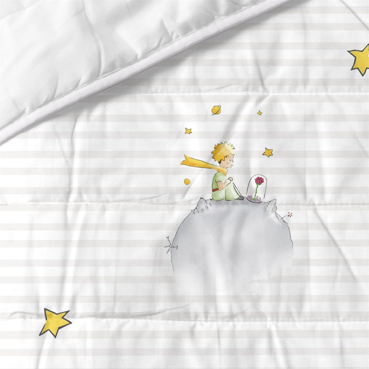 La cama de tu hijo estará decorada desde la almohada hasta el suelo con las fascinantes aventuras de El Principito cuando la cubras con la colcha Son Monde. Si no sabes qué cuento contarle antes de dormir, ¡empieza por dejar que tu pequeño elija una ilustración! ¡Fácil y muy entretenido!Las múltiples ilustraciones de esta colcha son posibles gracias a un proceso de impresión digital de alta definición, mientras que el algodón 100% de 150 hilos ofrece un toque suave y reconfortante.Disponible en las siguientes tallas:• 180×260 [ Cama 80/90 ]• 200×260 [ Cama 105 ]
