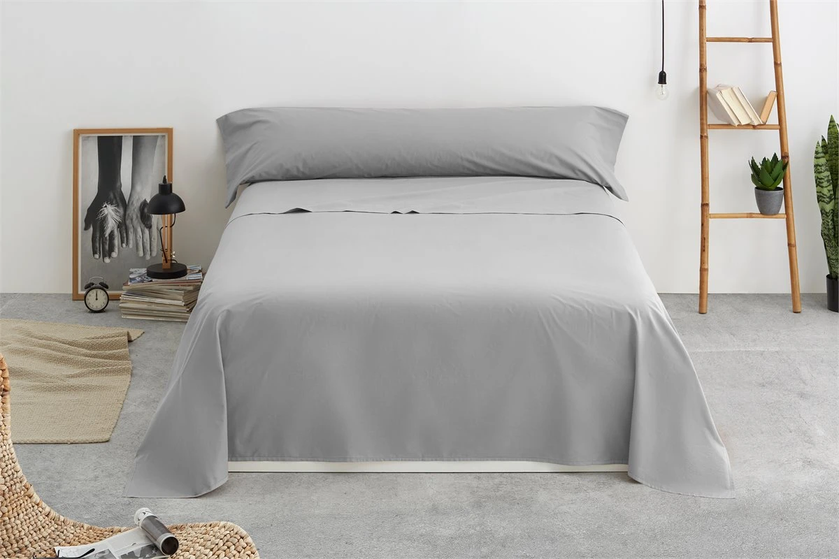 Vipalia – Juego De Sábanas Lisas 3 Piezas 50% Algodón – 50% Poliester. Modelo Rainbow Cama 150 Cm, Color Gris